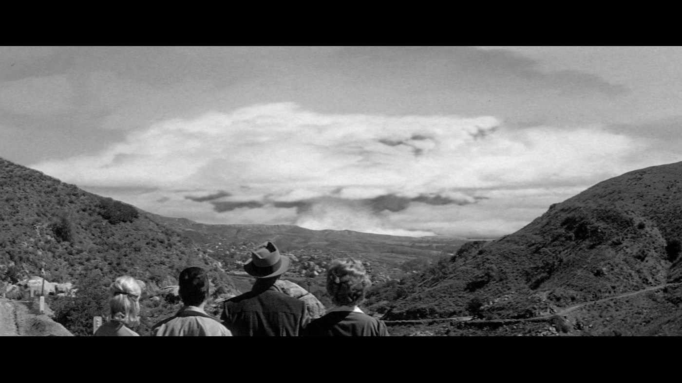 The idea is that some kind of normalcy is returning, despite the radio reports about the global nuclear war that just ended. No one ever gets radiation sickness. and food and water supplies remain uncontaminated (would the mountains really protect them that much?). Even the government and military continue to function somewhat smoothly. This could have been the aftermath of any catastrophe – a massive earthquake would be more realistic – but the Bomb was big pop culture business in 1962. It’s basically a MacGuffin, driving the action without ultimately meaning much.