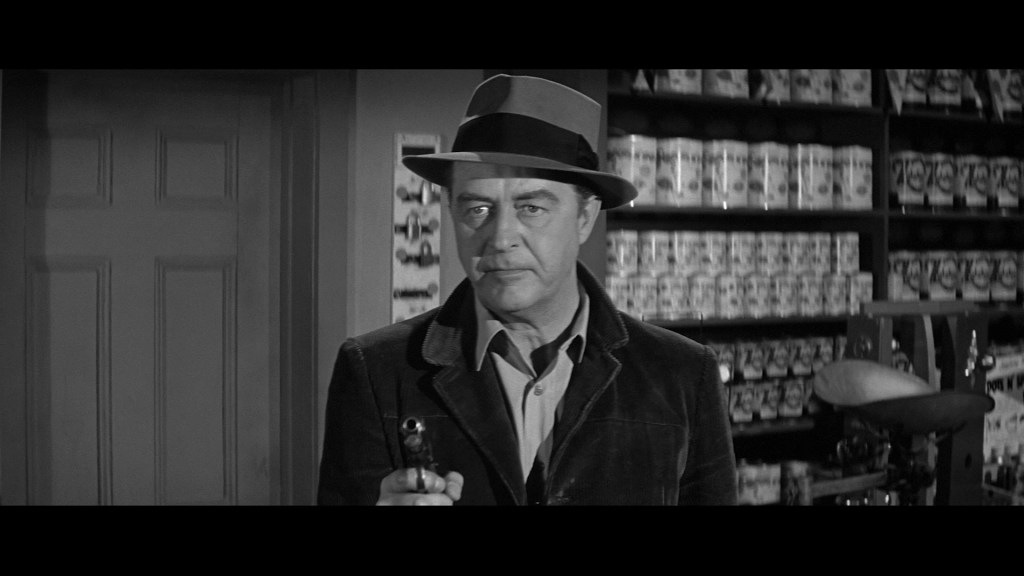 The scene does illustrate Harry’s boundless, apparently justified confidence in his abilities. At this point in his long career, Milland was looking a bit world-weary, and Harry epitomizes every postwar middle-aged man flailing for relevance as his world falls apart. He rises to the occasion, but only because he’s an invincible “everyman” hero, who absolutely has to succeed. If he can’t protect his all-American family, then everyone is doomed. It’s like watching Ward Cleaver play Mad Max.